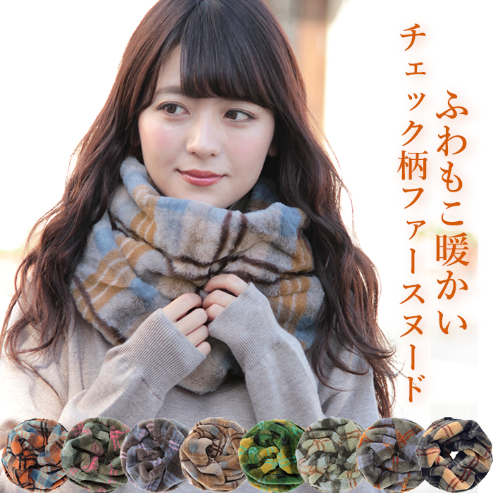 | チェック柄 ファースヌード fur 軽い ふわもこ ふわふわ 暖かい |