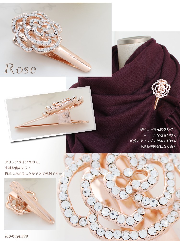ストールクリップ ファー クリップ レディース ストール留め ヘアクリップ 留め具 金具 花 フラワー モチーフ スワロフスキー クリスマス