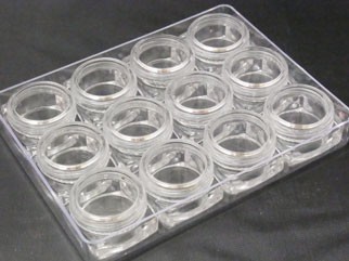 ■メール便送料無料(配送方法で、メール便を選択してください) ■デコパーツやアクセサリーの収納に大変便利な土台が付いたアクリルコンテナです。クリアなので、中身が良く見え、用途は様々です! 直径25mm、高さ15mm、土台含めた総横幅30mm 素材:アクリル