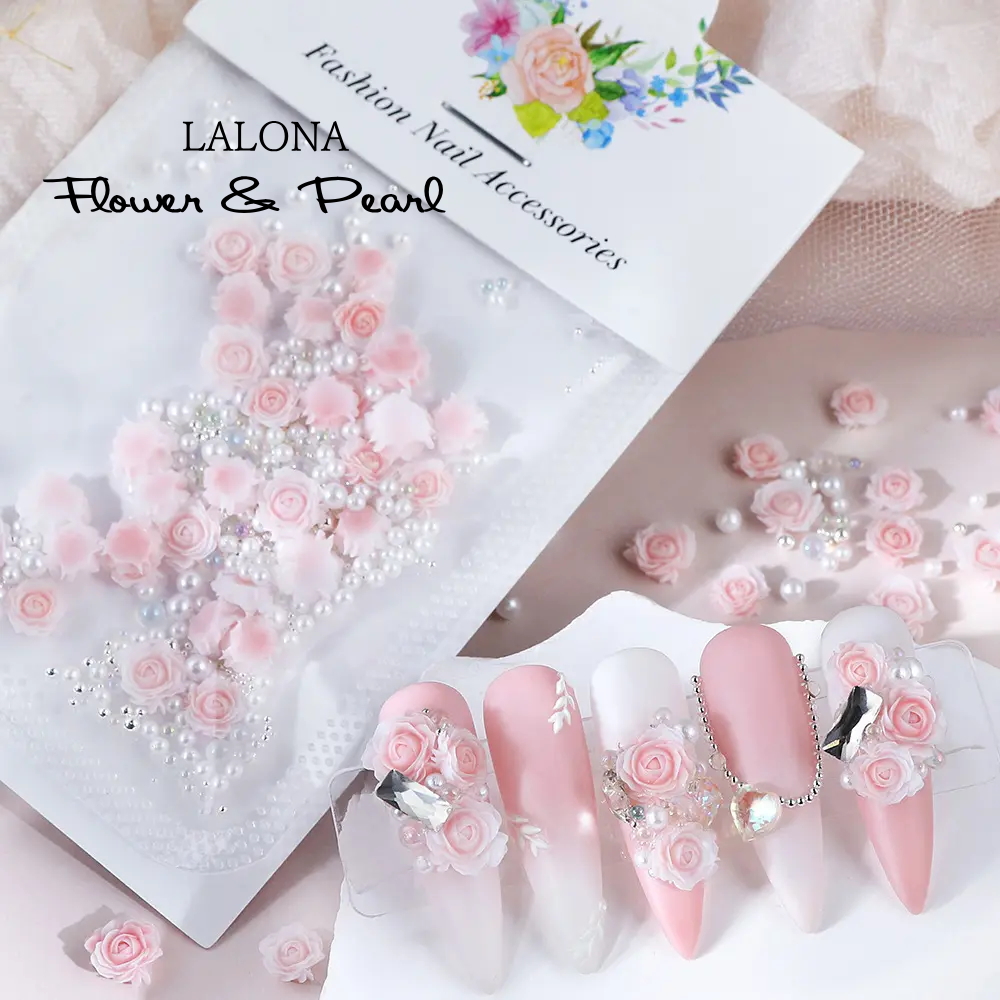 ラローナ[LALONA]フラワー&パール ( 9color から) ネイルアート/お花パーツ/韓国ネイル/ジェルネイル/ネイル/ブリオン/推しネイル
