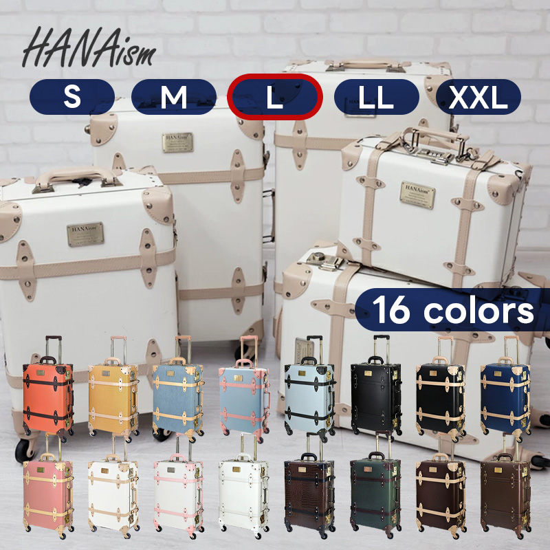スーツケース 国内旅行 短期出張 tasロック 鍵 旅行バッグ 静音 トランクキャリー 可愛い クラシック キャリーバッグ トランクケース L スーツケース Lサイズ キャリーケース ホワイト TSAロック 安い 軽量 小型 トランク 海外 国内 旅行 おすすめ かわいい 女子旅 オシャレ HANAism【NN-L】 爆買