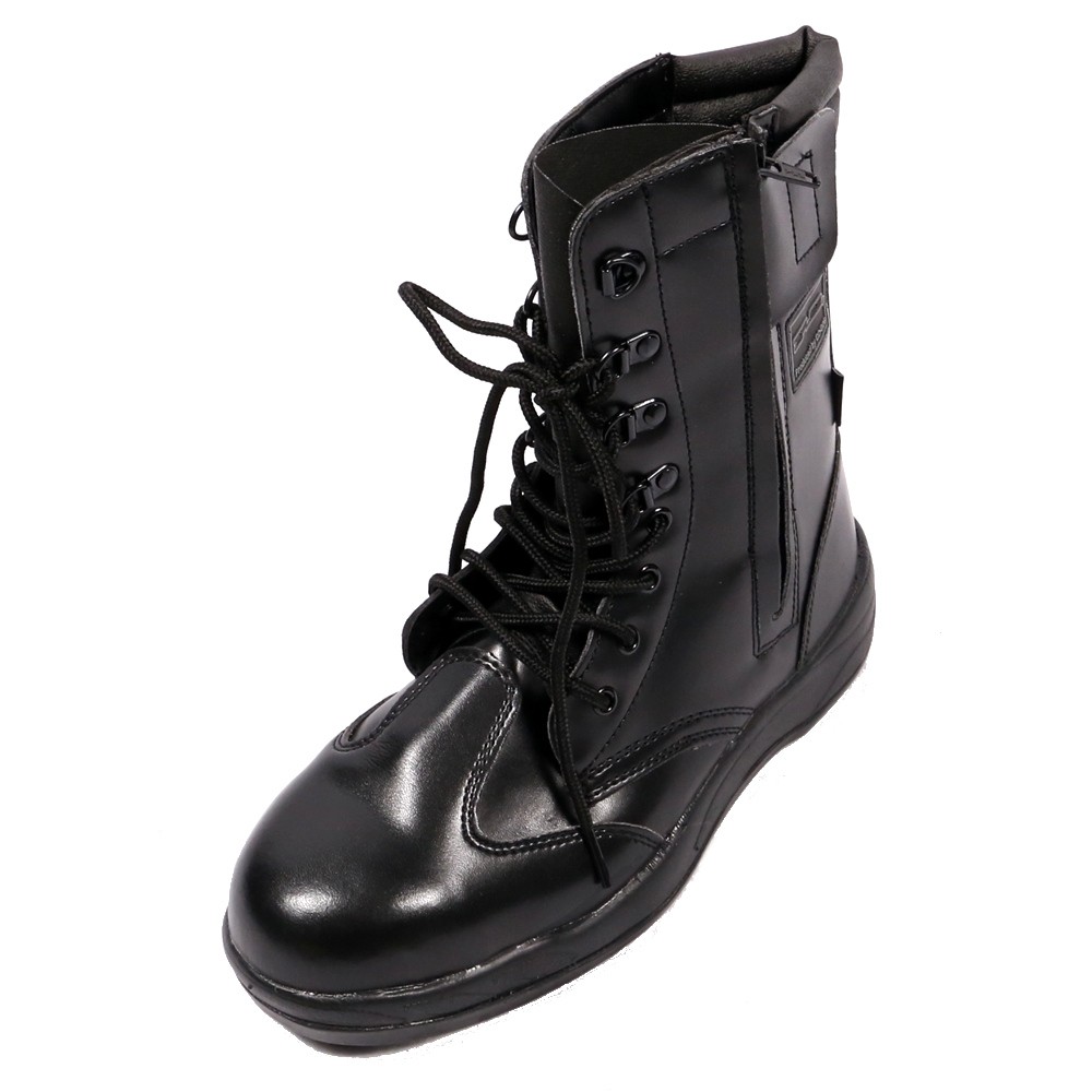 ジプロア セーフティ長編みブーツ 半長靴 ファスナー付 ワークブーツ 編み上げ ブラック 24.5cm HZ-703