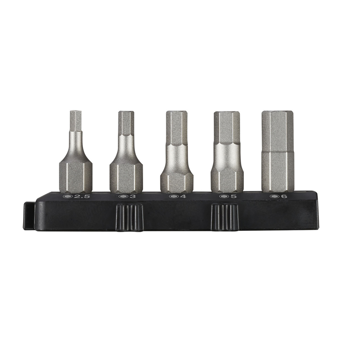 ・電動工具や手動ビットハンドルでプラス・マイナスネジを締める際にご利用いただくドライバービット(ヘックス)5本組です。