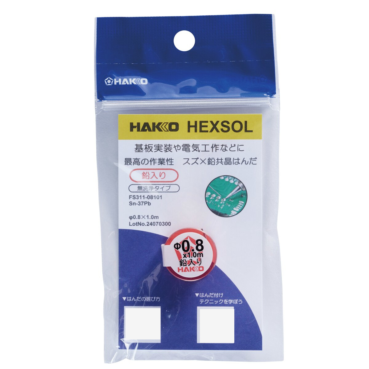 白光 HAKKO 鉛入リ共晶ハンダ Sn-37Pb フラックス無洗浄 φ0.8mm FS311-08101