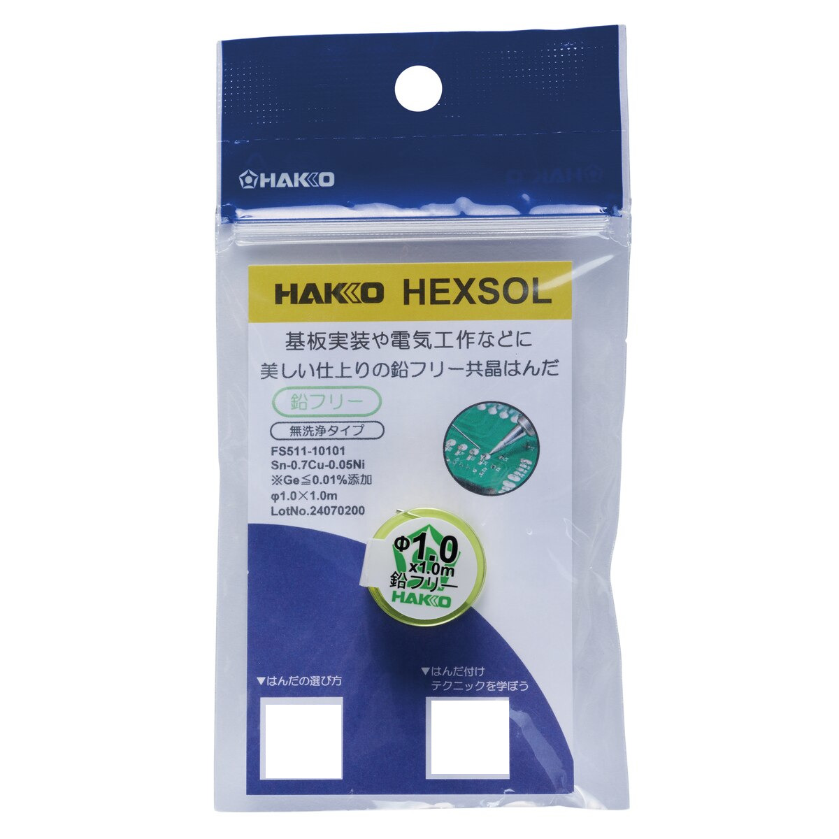 白光 HAKKO 鉛フリー共晶ハンダ Sn-0.7Cu-0.05Ni フラックス無洗浄 φ1.0mm FS511-10101