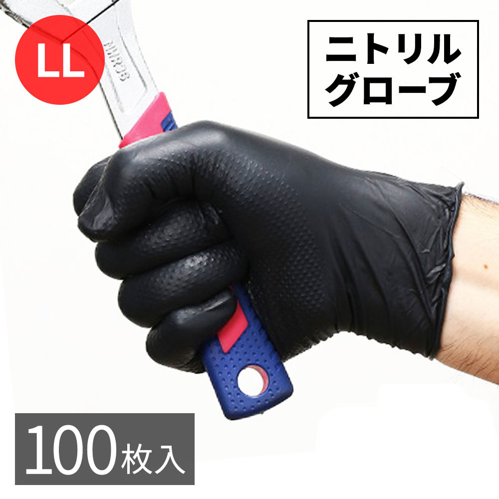「在庫限り」働く男のニトリルグローブ 100枚入 LLサイズ ニトリル手袋 黒 アークランズ