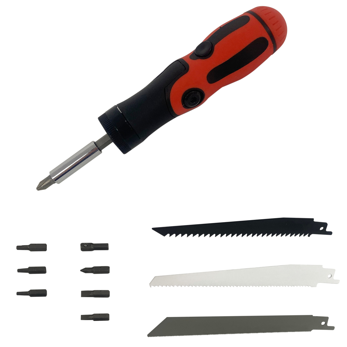 - セット内容:ハンドル×1、60mm延長バー×1、25mmビット×7、ブレード×3(木工用・金属用・石膏ボード用)、アダプター×1