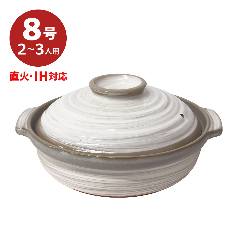 銀峯 粉吹刷毛目 8号鍋 土鍋 IH対応 2~3人用
