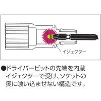 ・ドライバービットの先端を内蔵「イジェクター(PAT.)」で受け、ソケットの奥に喰い込ませない構造です。