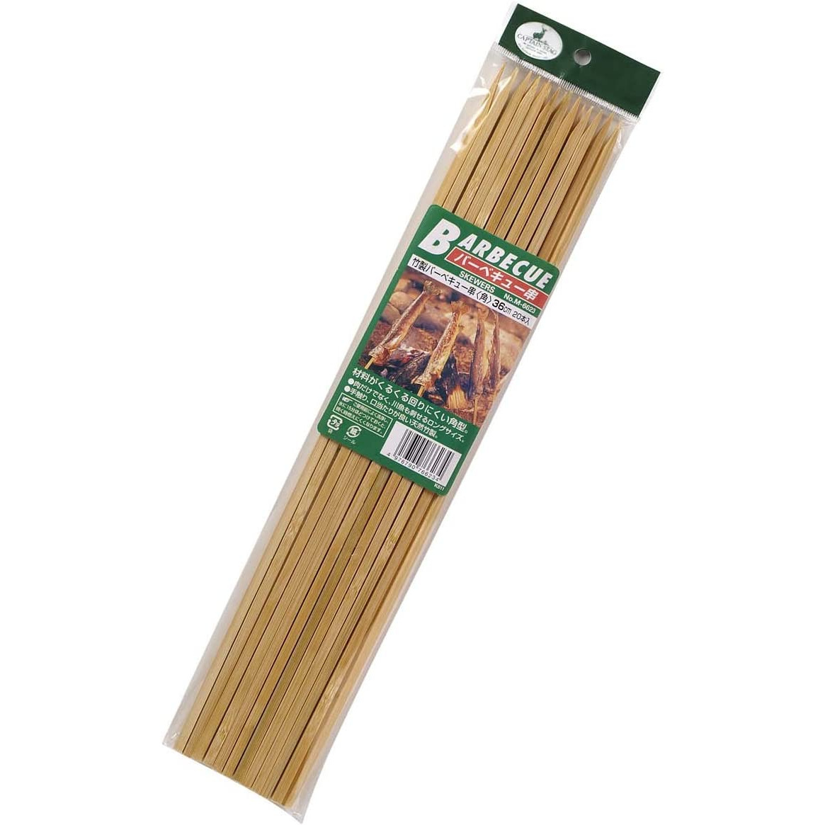 キャプテンスタッグ 竹製バーベキュークシ 角型 36cm 20本入 M-6623