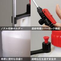 散布中の移動や収納も肩掛けストラップ付でラクラク。レバーロックをすれば連続噴射ができます。