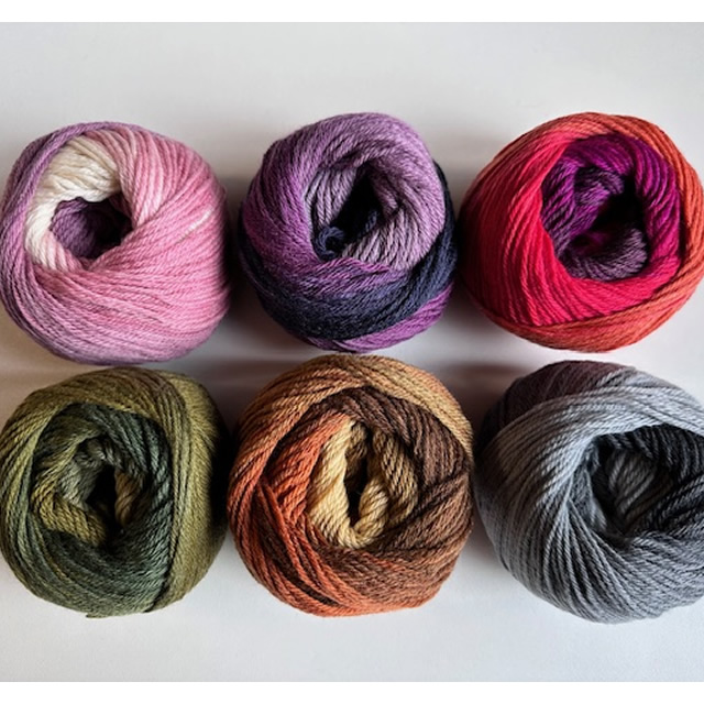 | ■商品について | メリノウール使用の合太ストレートヤーン。 グラデーション模様が綺麗にでます。 編み物にも織り物にも幅広くお使いいただけます。 |