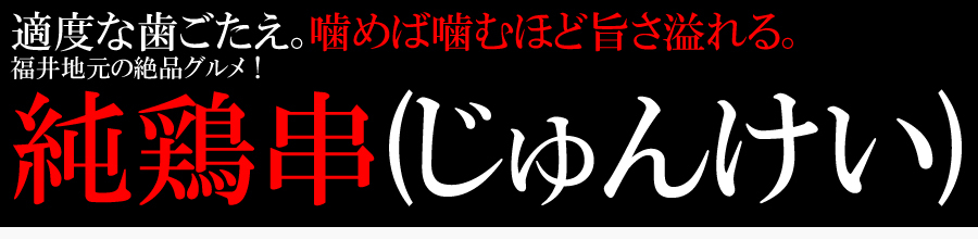 | 【送料無料】 ご家庭で美味しい焼き鳥!福井地元の絶品グルメ!!純鶏串(じゅんけい)どっさり20串 | |