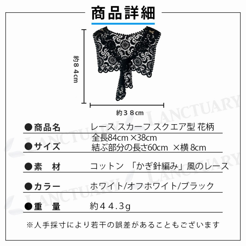 | 商品名:レース スカーフ スクエア型 花柄 カラー:オフホワイト ホワイト ブラック 材質: コットン 「かぎ針編み」風のレース サイズ(約cm): 全長84×38cm 結ぶ部分の長さ60×横 8 重さ(約):44.3g 特徴: 洗濯は手洗い推奨。繊細なレースのため、ネット使用 or 手洗いで長持ちします。 結び目を作るだけで完成。初心者でも簡単。被る or 引っ掛けるだけで装着可能。 アウターの下にも使える。ジャケットやカーディガンの下にレースを覗かせるだけでも印象的。 |