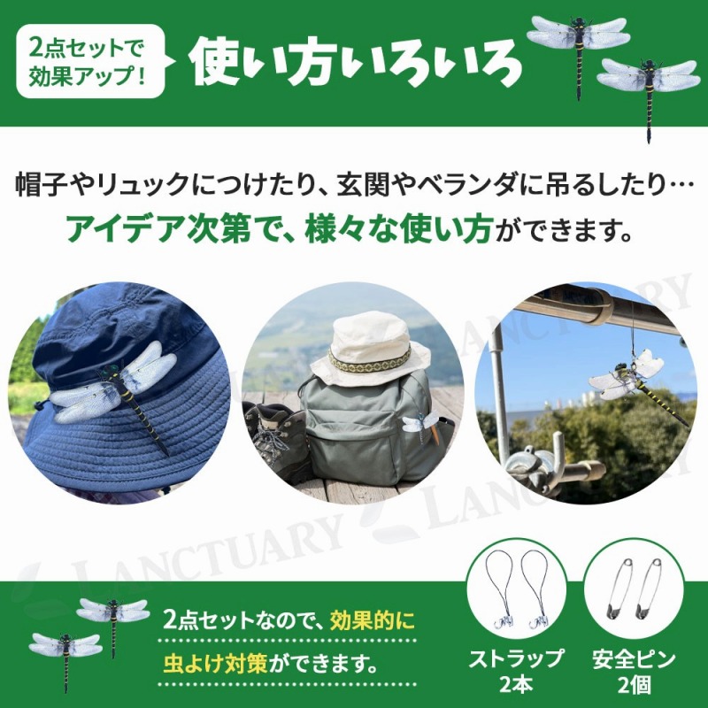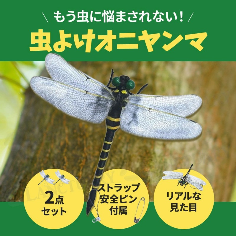 | 商品名: 虫よけオニヤンマ サイズ: 120mm × 105mm × 25mm 重さ: 15g セット内容: 本体 × 2 ストラップ ×2 安全ピン ×2 |