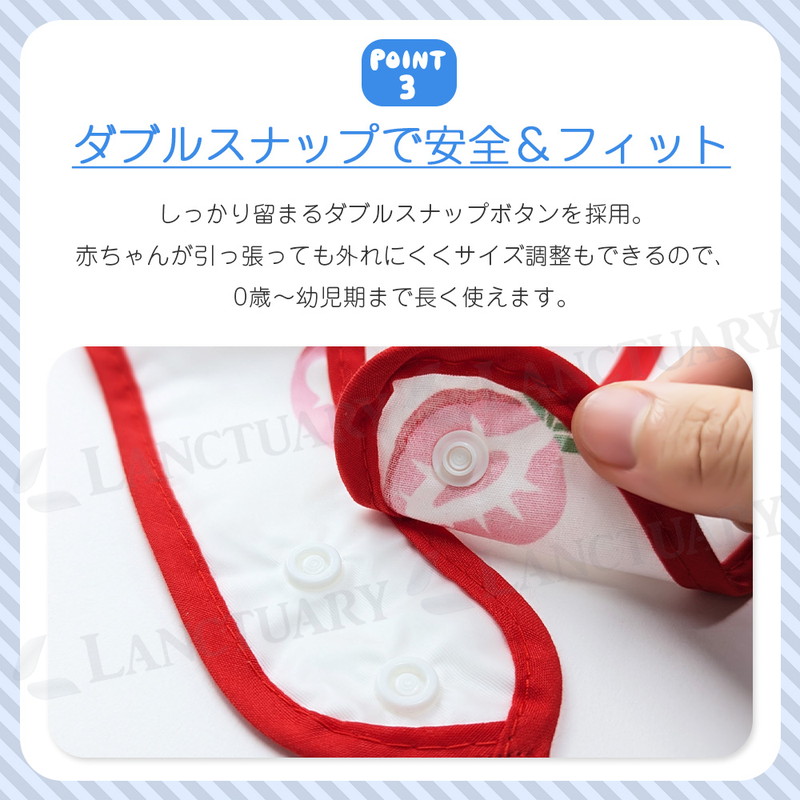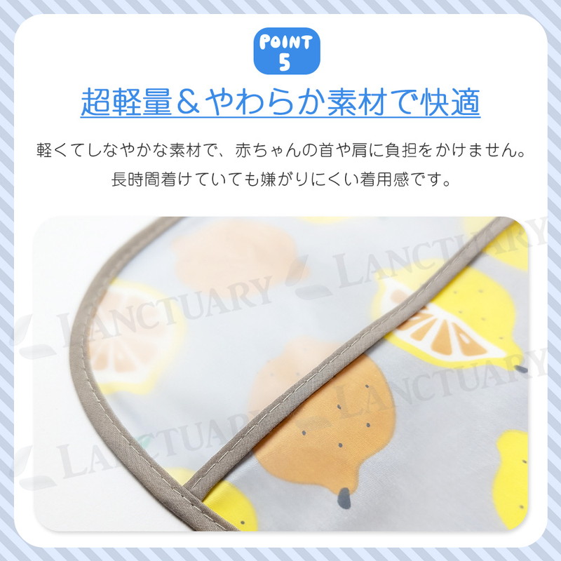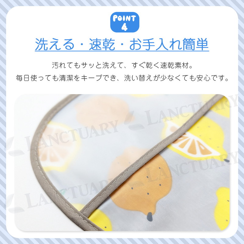 | 赤ちゃんの食事タイムで「服が汚れる」「後片付けが大変」と悩むママ・パパはとても多いもの。こちらの防水ビブは、そんな日々のお悩みを一気に解決してくれる便利アイテムです。完全防水素材を使用しているため、スープやお茶がこぼれても洋服に染み込みません。布スタイでは防げなかった水分や油汚れにも強く、毎日の離乳食シーンを快適にしてくれます。 さらに、食べこぼしをしっかりキャッチする大きめポケット付き。従来の平らなビブでは落ちてしまっていた細かい食べこぼしも、この立体ポケットが受け止めるため、床の掃除がぐっとラクになります。お子さまがスプーンを練習し始めた時期にも最適です。 首元はひもではなく、ダブルスナップボタンの安全仕様。動き回る赤ちゃんでもサッと装着でき、結ぶ手間がなく時短にも。軽くて柔らかい素材なので、赤ちゃんの首に負担がかかりにくく、長時間つけていても嫌がりにくいのが特徴です。 洗い替え用としても、保育園用としても便利で、写真映えも抜群。薄手でコンパクトに折りたためるため、外出時の携帯にも便利です。旅先やレストランでもさっと広げて使えるお役立ちアイテム。 防水素材は汚れに強く、使用後はサッと拭き取りOK。洗ってもすぐに乾く速乾タイプで、忙しいママに嬉しいポイントです。耐久性が高く、毎日の使用でもすぐにヘタらないため、長く愛用できます。 デザイン性・機能性・扱いやすさを兼ね備えたこのビブは、出産祝いのギフトにも最適。毎日の「困った」をやさしく解決してくれる、頼もしいベビーアイテムです。 |