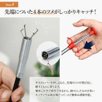 | お風呂の排水溝や、キッチンや洗面台。 トイレの詰まりなど。 できることなら触りたくない、ヌメヌメや髪の毛づまりをきちんとお手入れできていますか? 放置してしまうとニオイや酷い詰まりの原因となってしまうので、できることならスグに直接触らずなんとかしたいですよね。 きれいにしているつもりでも、誰だって詰まってしまういやなものが排水口の詰まり。 解けたタンパク質が髪の毛を絡めてしまい、頑固な固まりとなって排水口を塞いでしまうんです。 そんなイヤ〜な固まりをすぐに取り除いてくれるのが、片手で簡単に操作できるパイプクリーナー! 簡単操作で簡単解決! プロも愛用するワイヤー式クリーナーは、難しい知識も薬品も要らないので貴方のトラブルをすぐに解決してくれます◎ 先端についた4本のツメがしっかりキャッチ! 手元のレバーを押し込むと、先端のツメが飛び出し離すともとに戻ります。 簡単に片手で操作できるから、細々としたものが多いキッチンやお風呂場だって一人で簡単お掃除可能。 曲がった管もスイスイ通る柔らか仕様。 ぐるぐると蛇腹のようになった構造で道中の髪や汚れを取り除きながら、詰まっている箇所までしっかりと進んでくれるしなやか仕様。 強度が足りないと途中で折れてしまったり取り出せなくなったり、といった新たなトラブルも起こりがちですが、万全な強度と柔軟性を備えたクリーナーならいつでもどこでも大活躍です。 どんなに優秀でも、太すぎて入らないワイヤーだと詰まりは解消できません。 無駄を削ぎ落とし、優秀な性能の部品を使ったパイプクリーナーだからこそ、スマートなサイズ感を実現しました。 手強い詰まりだって、業者いらずでコストをかけずに即解決! 水回りでつかうものだからこそ、サビに強い素材で仕上げました。 折り曲げ自由自在なのに耐久性があって長く使える優秀素材は、貴方のもう一つの手のように馴染んで使いやすくお掃除をしてくれます。 1.詰まりが気になる排水口へ直接ワイヤーを入れます。 2.詰まっているところまで伸ばし、ハンドルを握ってください。 3.排水管の中で、ワイヤーを回しながら何回かハンドルをプッシュしてください。 4.そのまま引っ張り上げると、詰まりの原因ごと除去できます。 いつでもどこでも、水回りのお悩みを解決してくれるご家庭に1つは欲しいベストサイズのアイテムです。 うっかり排水口に、リングやネックレスなどアクセサリーを落としてしまった際にも大活躍するワイヤー式パイプクリーナー。 使い終わったあとは、きれいに汚れを落としてしっかり乾燥させておくといつまでも繰り返し清潔を保てます。 貴方の手のかわりに、ヌメヌメや髪の固まりを除去してくれるお掃除アイテムぜひ一度お試しください◎ |