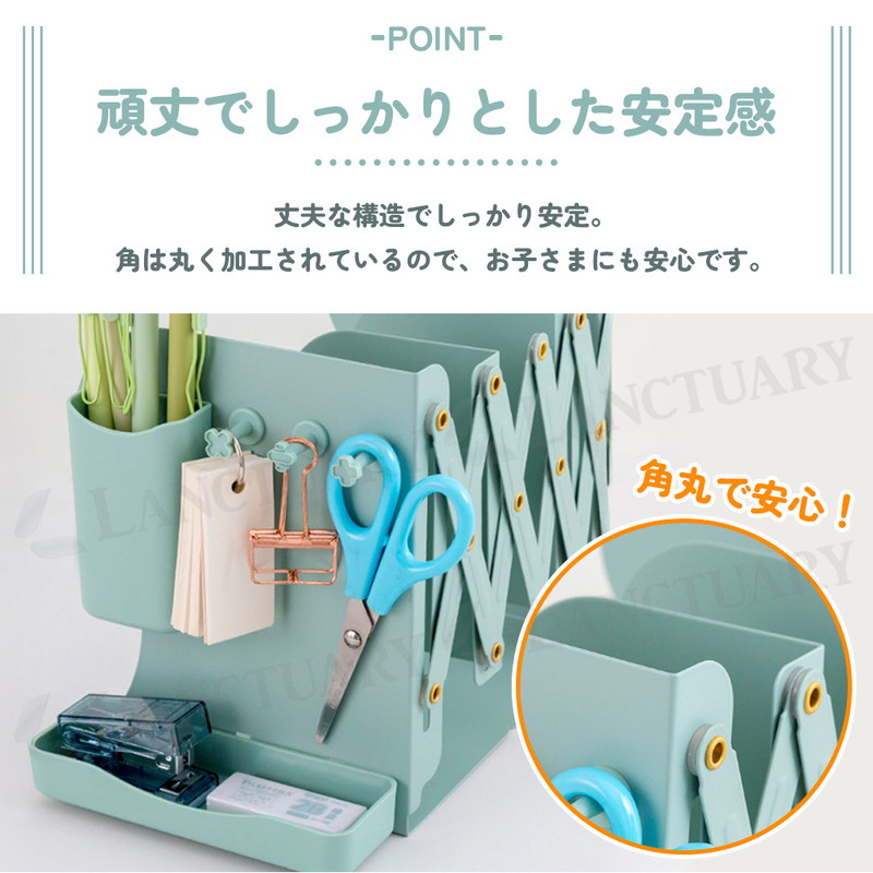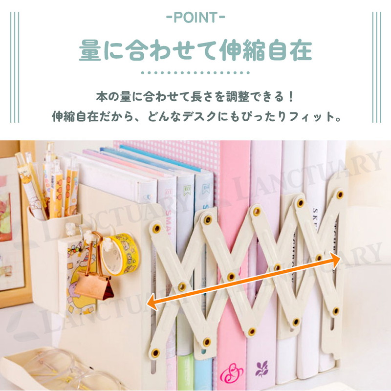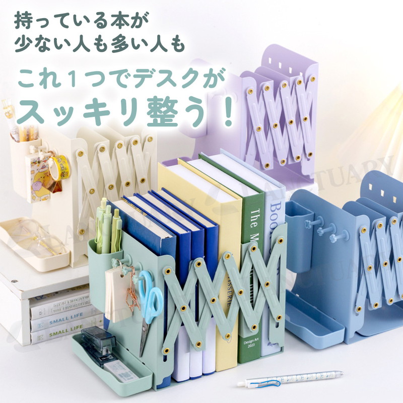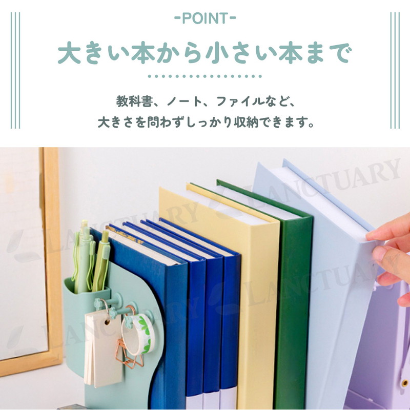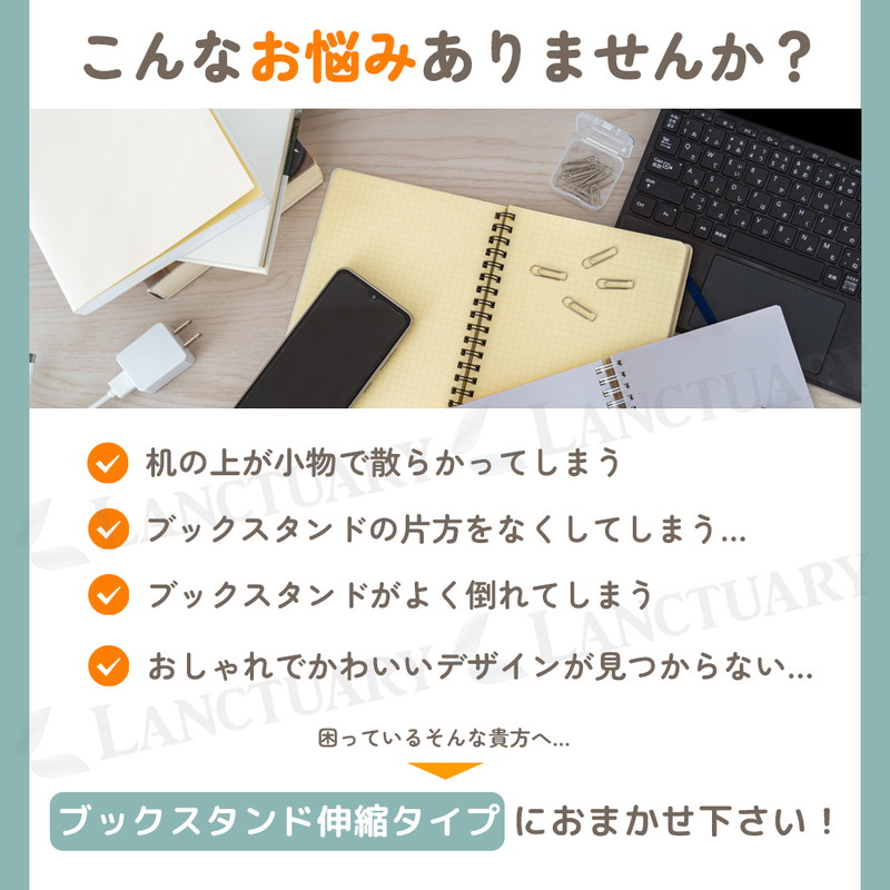 | どんな大きさの本でも収納できるブックスタンドは欲しくありませんか。 このブックスタンドが1つあれば、散らかった机を整理整頓し、より快適に机を使うことができます。 女性でも手軽に使える、引き込み式伸縮タイプなので本から雑誌まで簡単に収納ができます。 小物やペン、無くしがちな眼鏡もブックスタンドに付属している小物入れがあれば無くすことはありません。 小物入れやペンホルダーや小物入れやフックをくっつける穴も、左右の壁についているため、自分好みにカスタマイズすることができます。 また、錆びにくく、安全性を意識したデザインを用いている為、お子様のプレゼントにも最適。 様々なカラーバリエーションがある為、幅広い年齢層に使っていただけます。 自分の部屋に置いても良し、仕事場に置いても良し、ご家族のためにプレゼントしても良し。 おしゃれは「見た目」も大事です。 このブックスタンドをカスタマイズして、おしゃれを楽しみながら、整理整頓をやってみませんか。 |