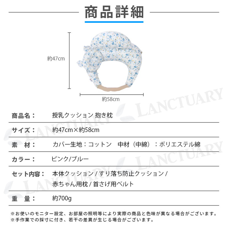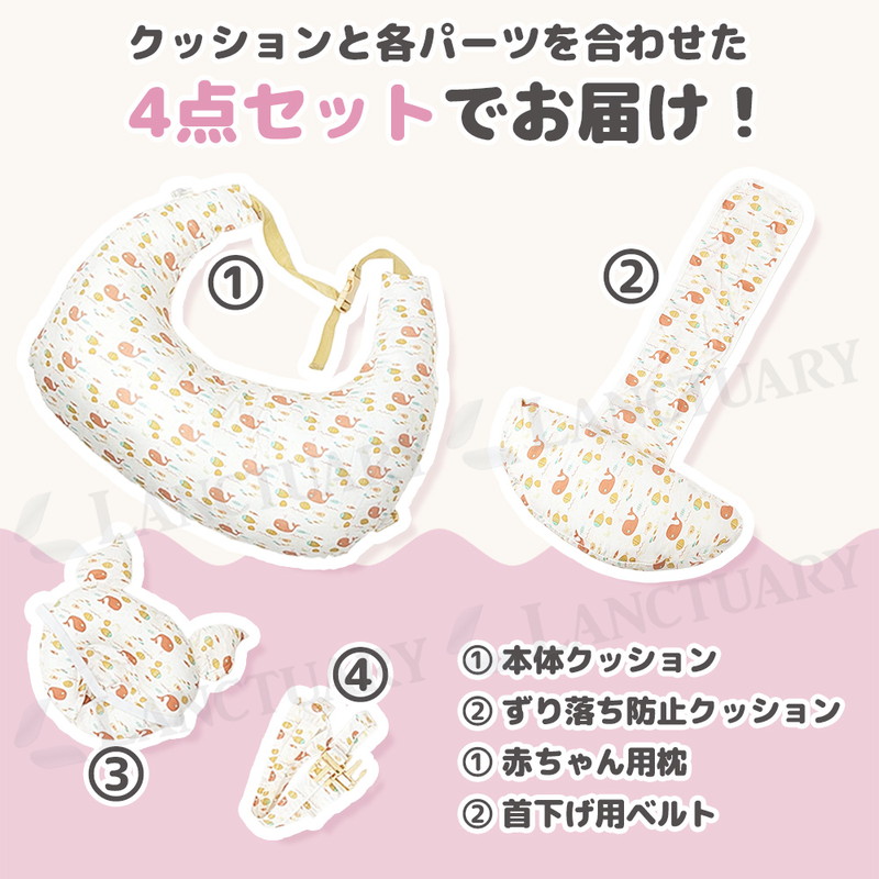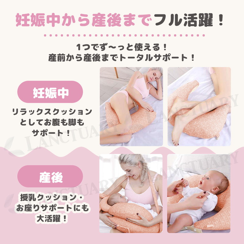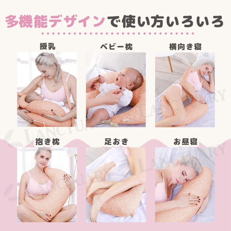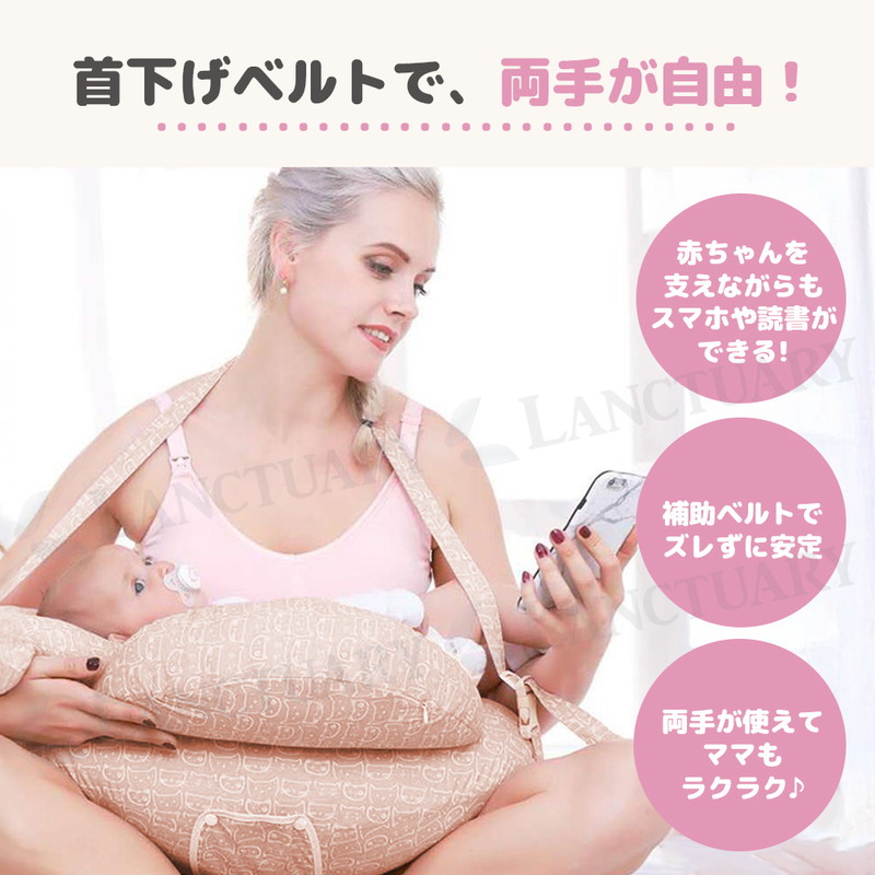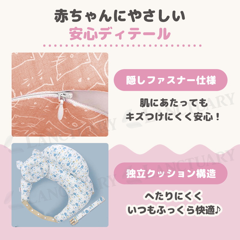 | 多機能5WAY構造 妊娠中から産後 ベビーの成長まで対応。 この最新型U字型授乳クッションは 妊娠中の横向き寝サポートから産後の授乳 ベビーのお座り練習まで一台で5通りの役割を果たす多機能設計です。 抱き枕、本体ベビー枕、ガードの独立、インナーライナー構造により、クッションを単体でも使用可能。 成長に合わせて長く使えるため他社品にはない高い汎用性を実現しました。 両手解放を実現する補助ベルト&差し込みバックル。 授乳時の肩や腕 腰への負担を軽減するため 補助ショルダーストラップを標準装備しました。 首掛け式でクッションがずれず両手を完全に解放します。 授乳中もスマホ操作や読書ができストレスフリーです。 ウエストサイズに合わせて多段階調節が可能な差し込み式バックルにアップグレードし、どんな体型のママにもパーフェクトフィットします。 従来の煩わしいスナップボタン式よりも格段に素早く快適に装着できます。 ひんやり冷感 アイスシルク素材で夏も快適。 暑い季節の授乳時も快適に過ごせるようにアウターカバーにはアイスシルク植物繊維を採用しました。 接触冷感性と抜群の通気性 吸水性で汗をかいても、すぐに吸湿排出し、肌に触れるとサラサラひんやりとした感触が持続します。 蒸れやすい季節でもママと赤ちゃんに最高の快適性を提供します。 カバーは洗濯機で丸洗い可能 常に清潔な状態を保てるため衛生的にも安心です。 赤ちゃんに優しい設計を徹底し、肌への刺激を防ぐコンシールファスナー(隠しジッパー)を採用しました。 しっかりとしたサポート力でお座り練習にも最適です。 この多機能授乳クッションは 出産準備品としてはもちろん、大切な方への出産祝い、マタニティギフトとしても大変喜ばれます。 最高の快適性で 毎日の育児と休息の時間をサポートします。 |