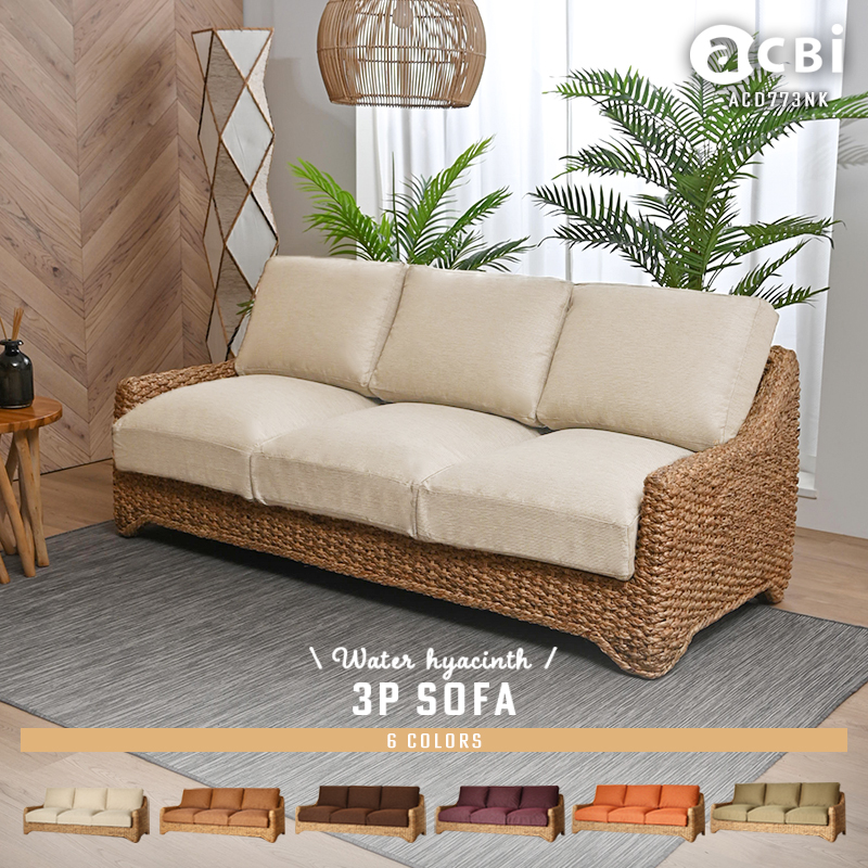 アジアン家具@CBi(アクビィ)シリーズのウォーターヒヤシンス製の3人掛けソファです。