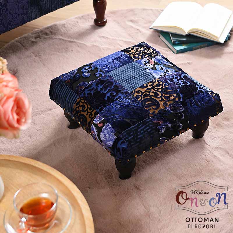 エレガントなアンティーク調のUKクラシックスタイルなフォルムをベースに、遊び心を感じる様々なパターンの生地をパッチワークしたオシャレな足置きオットマン。