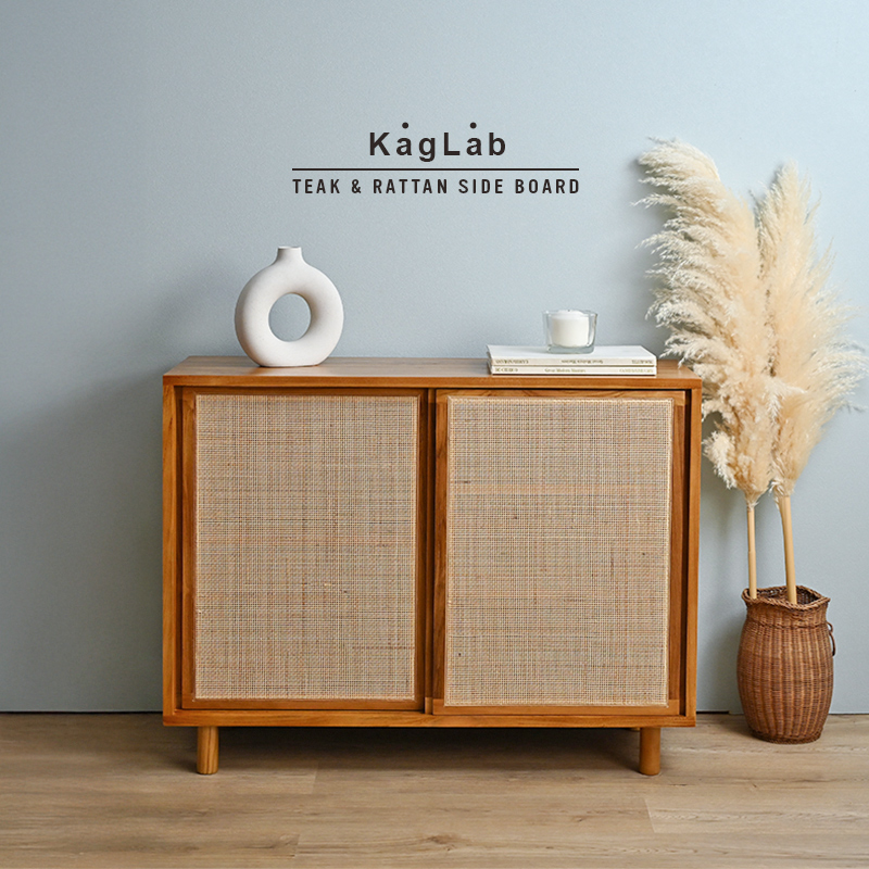 温もり溢れるチーク無垢材×ラタンのサイドボード