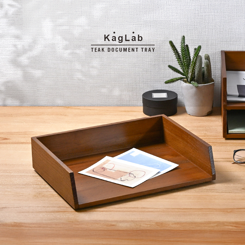 使えば使うほど味わいの増すチーク材でつくられた書類トレイ。