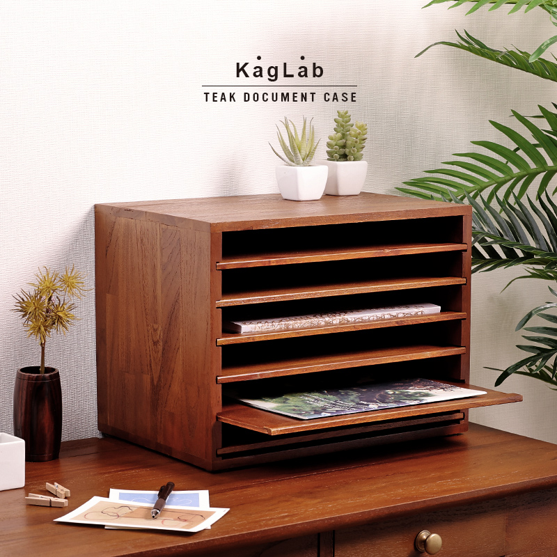 使えば使うほど味わいの増すチーク無垢材でつくられた、デスクの周りの収納アイテム。