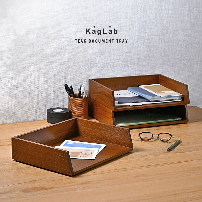 使えば使うほど味わいの増すチーク材でつくられた書類トレイ。
