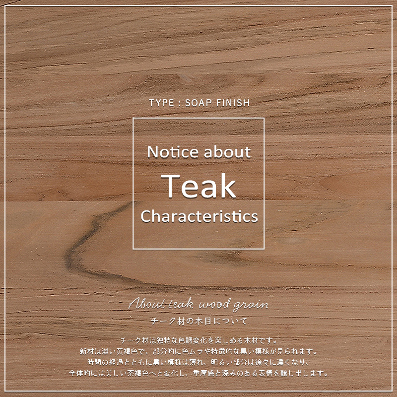 またチーク材には天然の油成分が豊富に含まれているため、使えば使うほどにしっとりとした質感へと変化していきます。