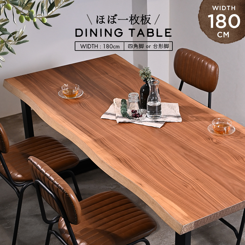 ・ほぼ一枚板ダイニングテーブル 幅180cm【ナチュラル】