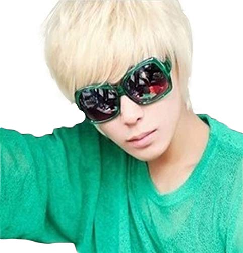 (ハッピーココ)happykoko メンズ ウィッグ ウイッグ ネット 付き かつら ショート 短髪 ストレート 耐熱 男装 (ゴールド/金髪)