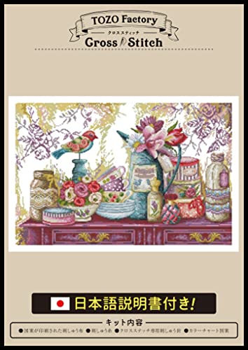 (TOZOファクトリー) クロスステッチ 刺繍キット 刺繍 ししゅうキット 図柄印刷 日本語説明書付き 風景 14CT 小鳥のティーパーティ