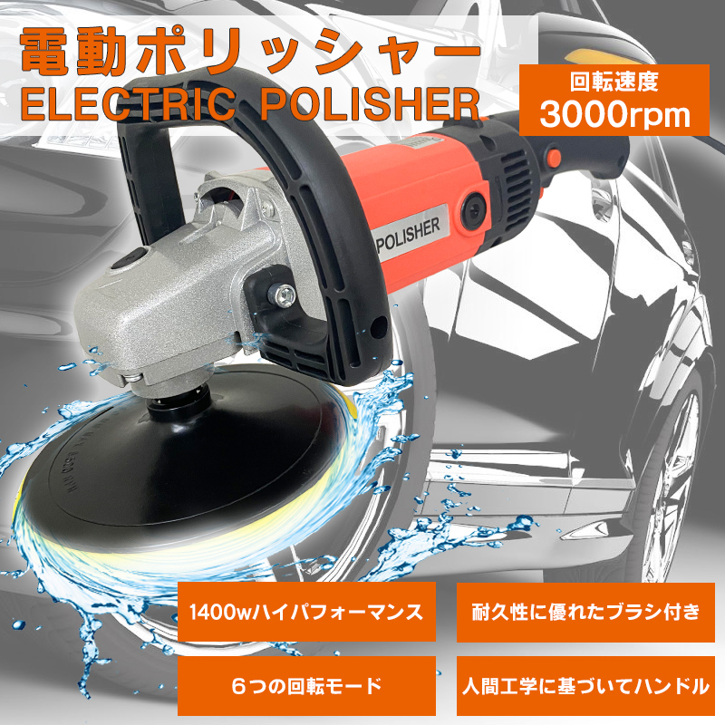 ポリッシャー 電動 ポリッシングスポンジセット 1400W強力モーター 六段変速 サンダポリシャー 洗車 研磨 軽量 車用 車磨き 自動車用 メンテナンス