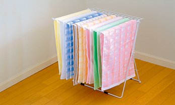 場所をとらないコンパクトサイズのタオルハンガー。ちょっとしたスペースに置けて便利です。