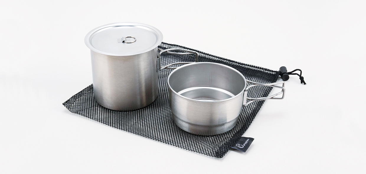 2WAYライスクッカーセット SOLO 1合炊 収納袋付 (PY-C011) ステンレス鋼 飯盒 炊飯 お手入れ簡単 アウトドア キャンプ シンプル メッシュ袋【日本製】