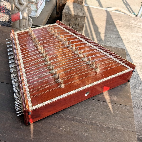 台形の共鳴箱に何本もの金属弦を張り 細い木製のバチで打奏する打弦楽器です