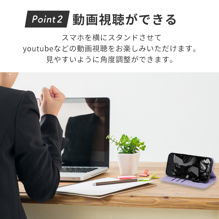 ・スマホを横にスタンドさせて、youtubeなどの動画視聴をお楽しみいただけます。