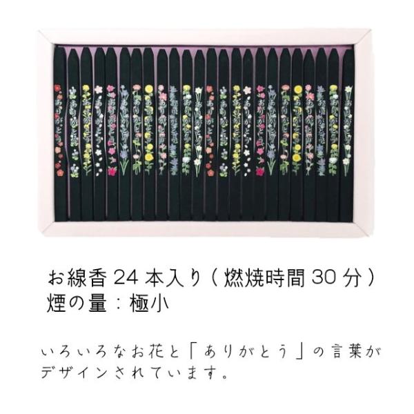 【沢山の有りが灯 香】一本一本にお花とありがとうが描いてあります。
