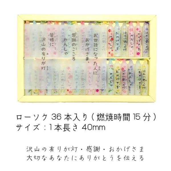 【沢山の有りが灯ろうそく】1本1本にありがとうを意味する言葉と花の絵が入っています。