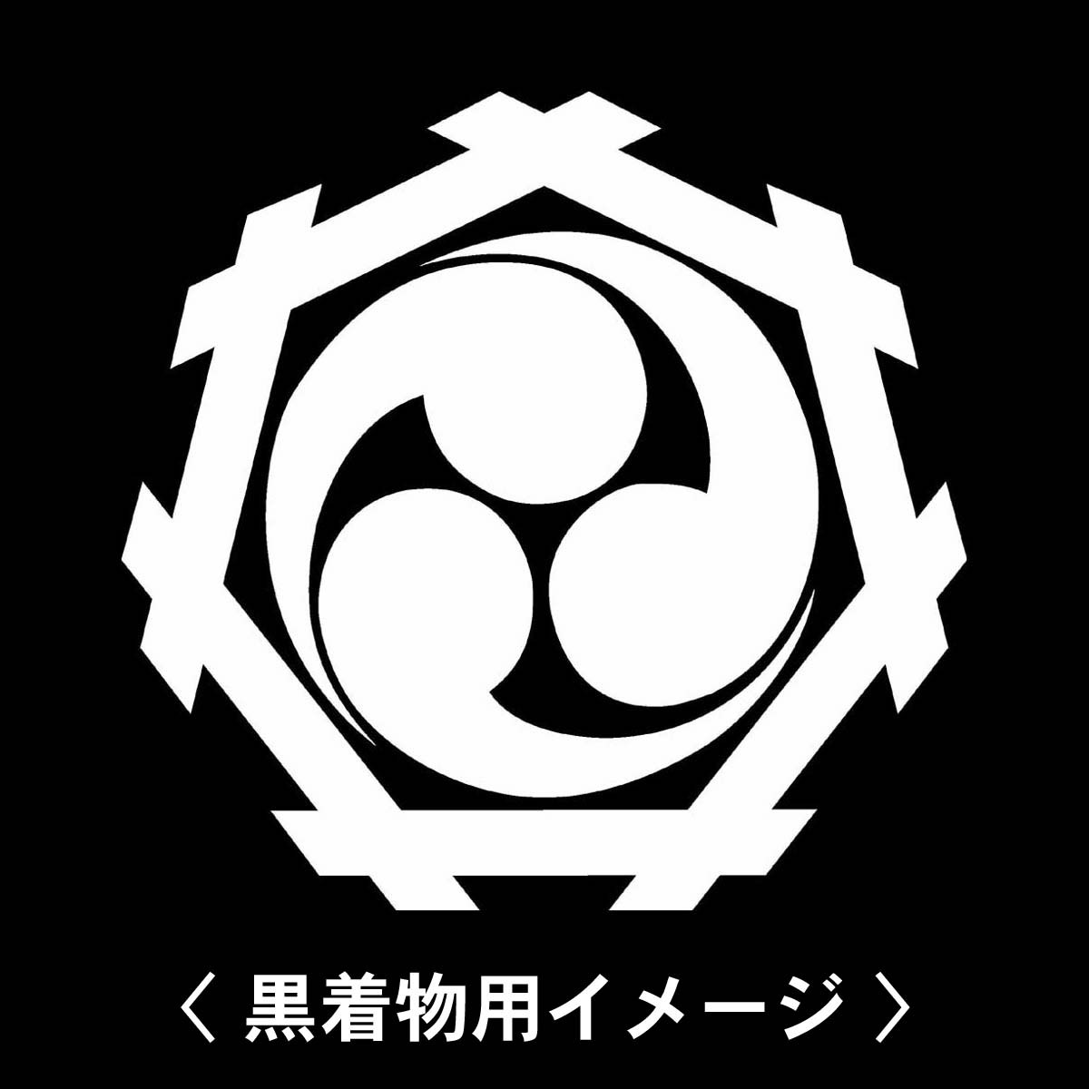 【 七角井筒に左三つ巴 紋 】6枚入(布製のシール)羽織や着物に貼る家紋シール。男性 女性 留袖 黒紋付 白.黒地用 男の子着物用 七五三 お宮参り 貼り紋