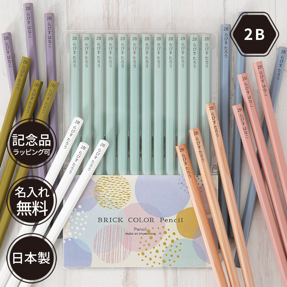 鉛筆 名入れ ブリックカラー鉛筆 2B 赤鉛筆 赤青鉛筆 卒園 記念品 入学祝い オリジナル えんぴつ 無地 シンプル かわいい