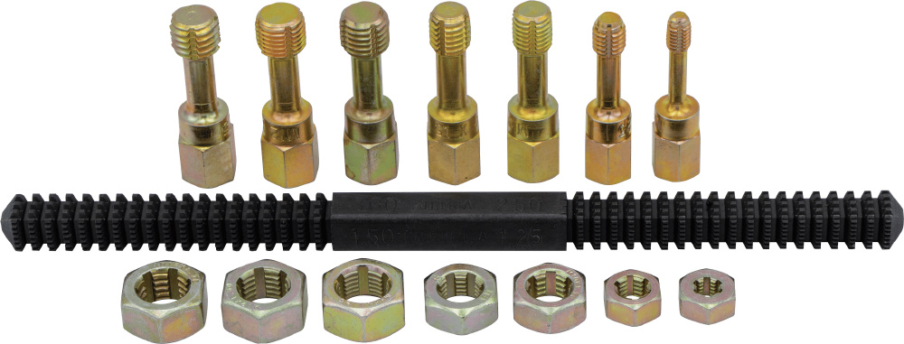 ●セット内容:タップ・ダイス/ミリ(M6-1.00・M8-1.25・M10-1.25・M10-1.50・M12-1.25・M12-1.50・M12-1.75)、ねじ山ヤスリ/ミリ/ピッチ(0.75・1.00・1.25・1.50・1.75・2.00・2.50・3.00)、専用樹脂ケース
