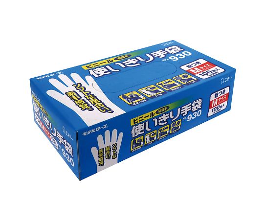 ナビス ビニール使いきり手袋 粉つき モデルローブ 半透明 MNo.930 7-9234-02