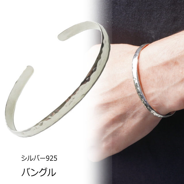 シルバー925 5.5mm幅 バングル 槌目加工 ハンマリング シルバーブレスレット silver925 シルバーアクセサリー メンズ mens 夏アクセ