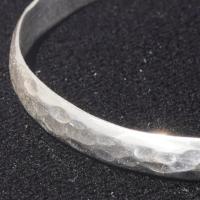 メッキ加工されていないシルバー925製の幅5.5mmバングル。 手作業で入れた槌目の模様がカッコいいバングルです。