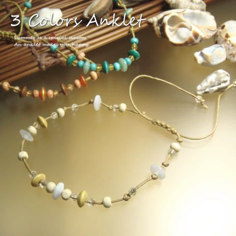 3カラー 涼しげビーズの調節ラクラクなアンクレット 送料無料