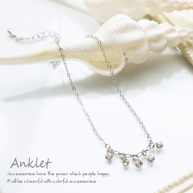 アンクレット 5粒 ガラスストーン シンプル 夏 レディースアンクレット 送料無料