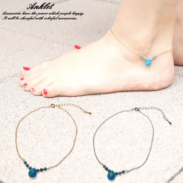 アンクレット チェーンアンクレット ターコイズ風 トルコ石風 ビーズ エスニック ゴールド シルバー 夏アクセ 送料無料