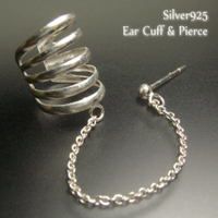 チェーンがシャラリとさがり、カッコいい!外れやすいイヤカフをピアスをすることで取れないところもGOOD。一瞬でハードロックに変身です。